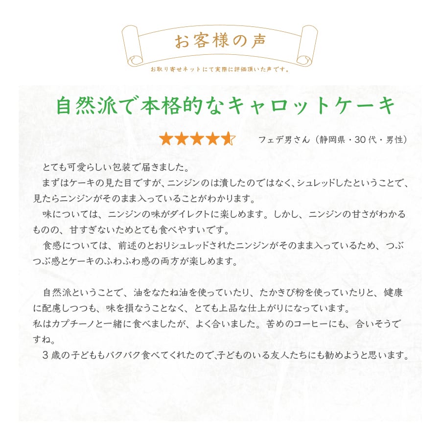 主役は厳選した自然栽培の人参。ケーキ1本に約100gの人参が入っています。